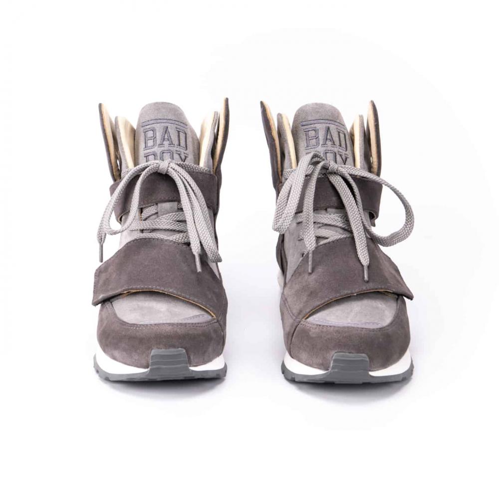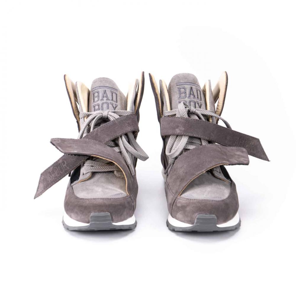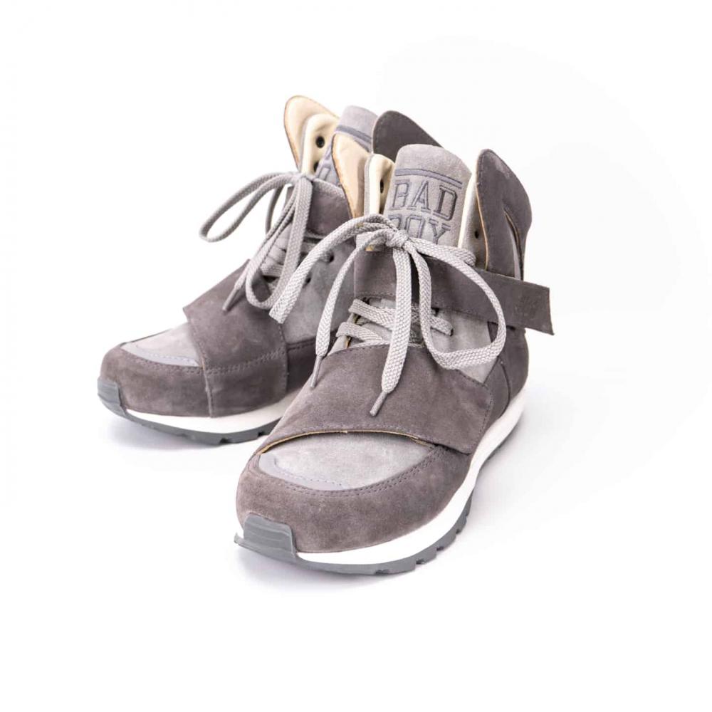 Высокие кожаные кроссовки Bad Boy. Дизайн кроссовок вдохновлен ретрофутуризмом, те взглядом на будущее с учетом технологий прошлого. Поэтому кроссовки имеют стремительный космический силуэт, классные боковые элементы похожие на крылья, а шнуровка дополнена липучками. При этом используем классические натуральные материалы и швы, создавая уникальный стиль из микса футуристичного дизайна и обувного ремесла. Именно так на наш взгляд выглядели бы кроссовки в 2020 году, если бы их проектировали в 1980 году. Язык украшен вышивкой с надписью Bad Boy, но по желанию можем написать Bad Girl.
