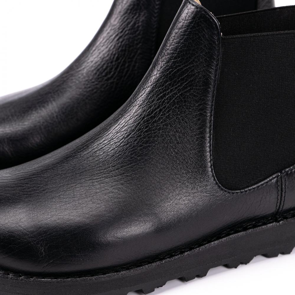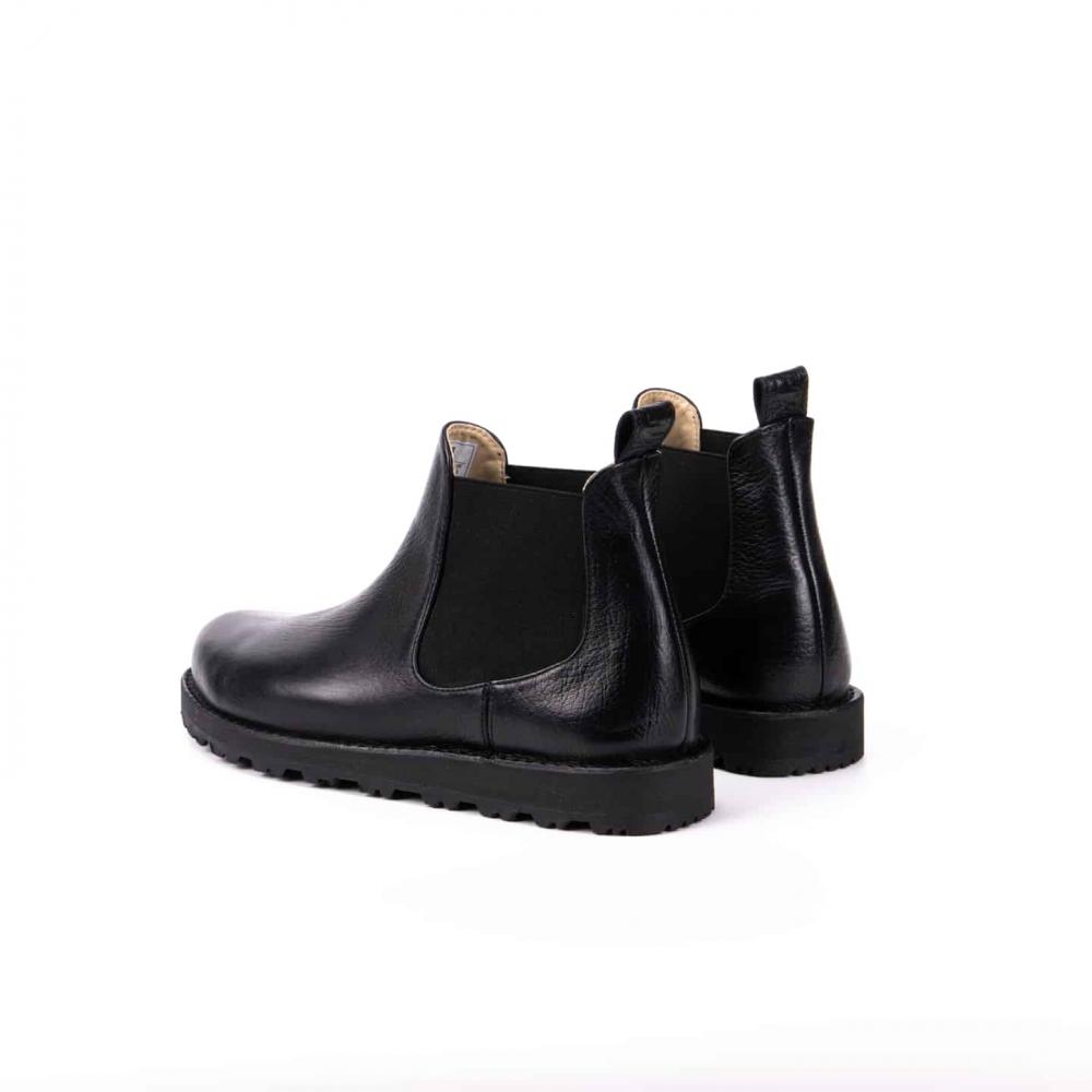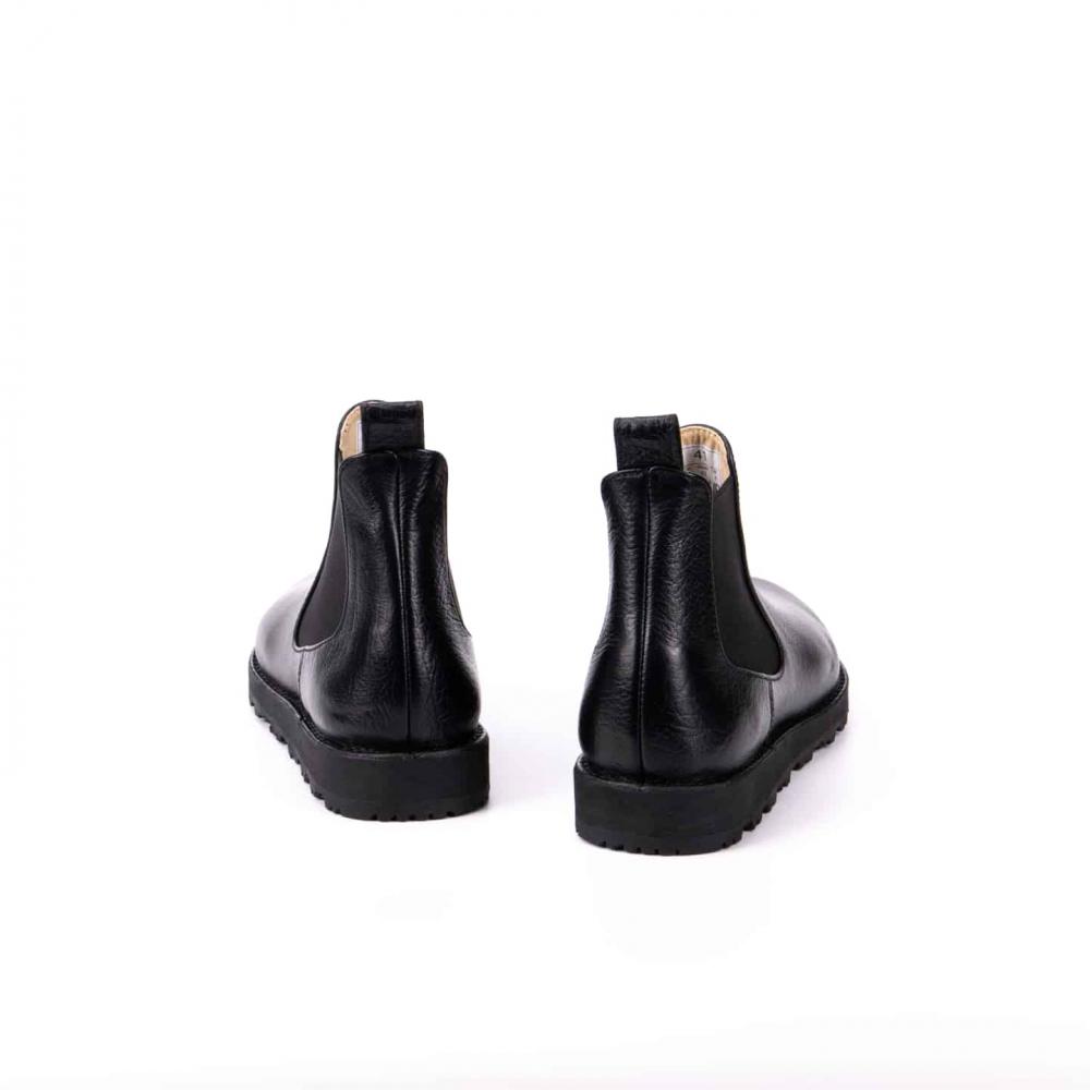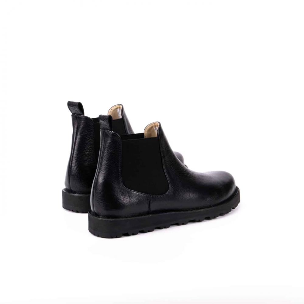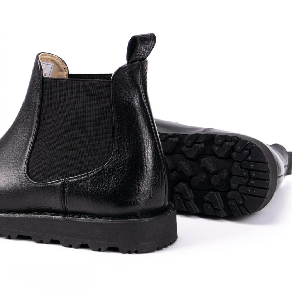 Ботинки челси с усиленной подошвой — стильная и практичная модель для повседневной носки в любое время года. Выполнены из натуральной кожи буйвола черного цвета, эти челси выгодно выделяются на фоне классических чёрных и коричневых моделей. Эластичные вставки по бокам обеспечивают комфортную посадку и удобство при обувании, а плотная петля на заднике облегчает процесс надевания.