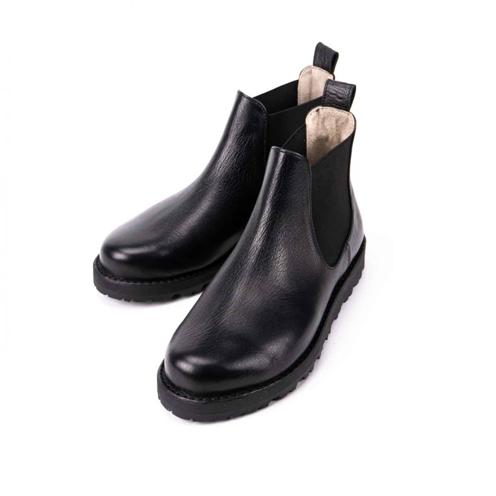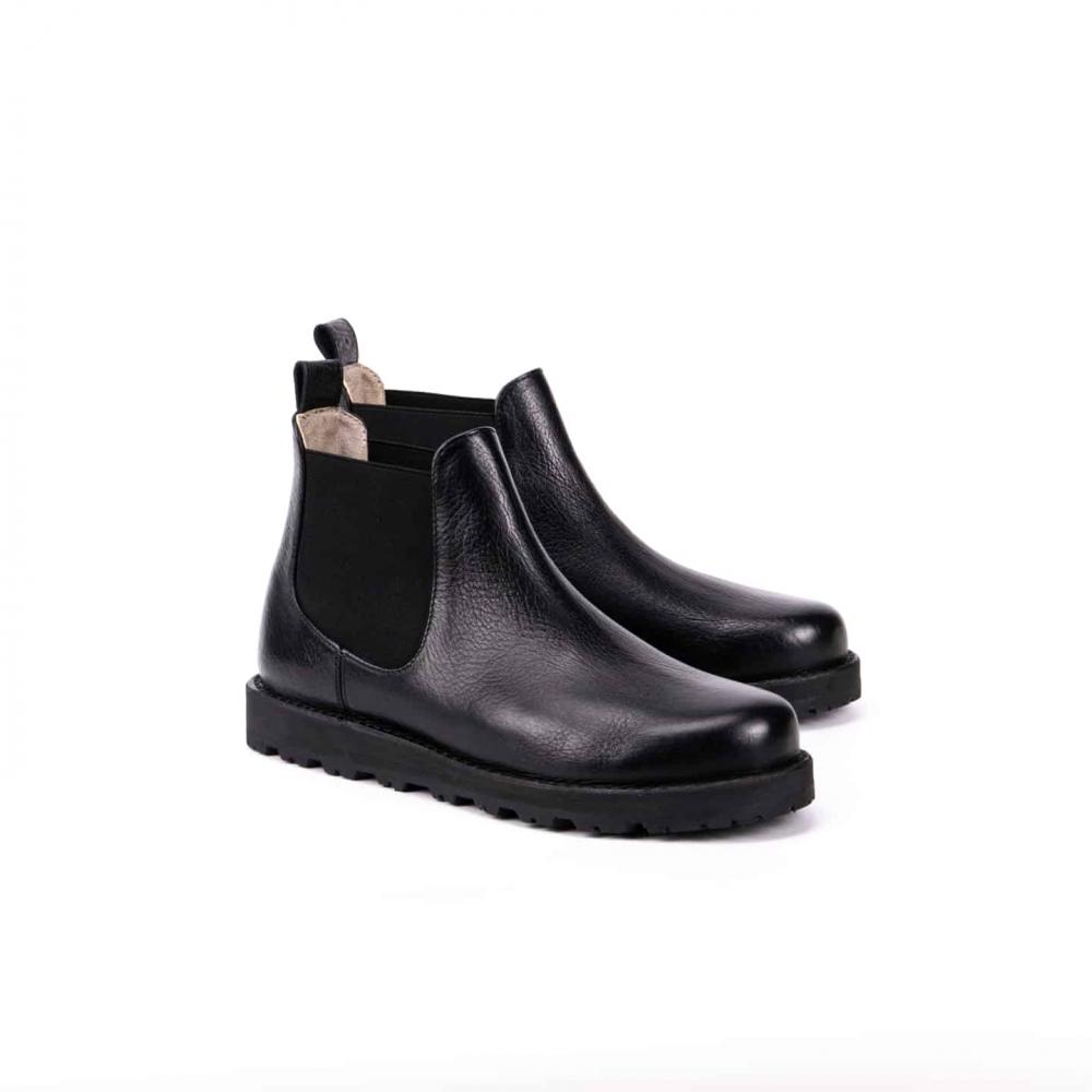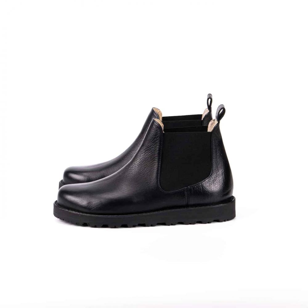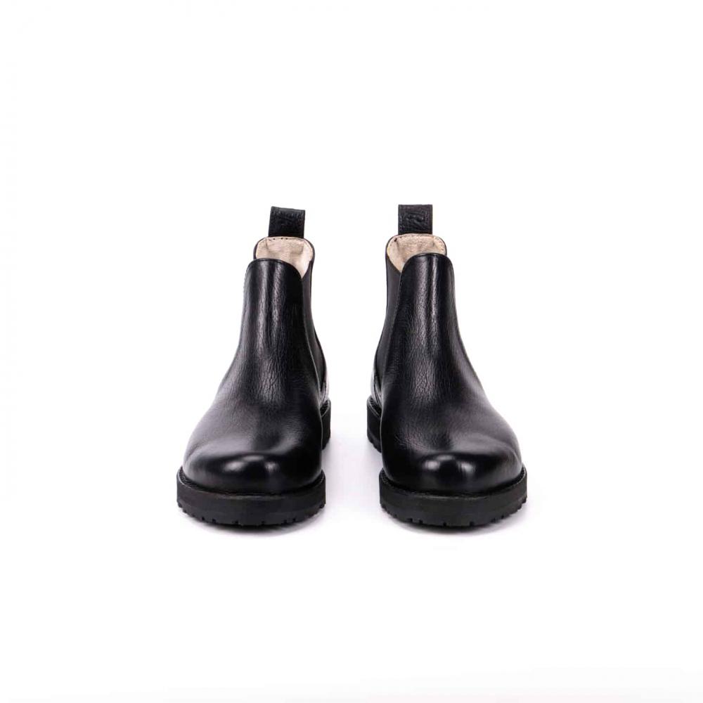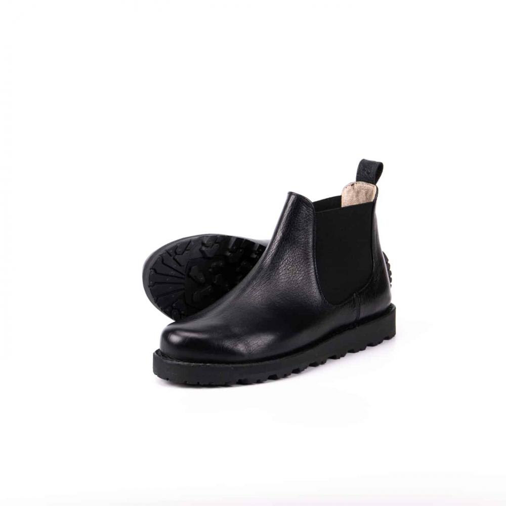 Ботинки челси с усиленной подошвой — стильная и практичная модель для повседневной носки в любое время года. Выполнены из натуральной кожи буйвола черного цвета, эти челси выгодно выделяются на фоне классических чёрных и коричневых моделей. Эластичные вставки по бокам обеспечивают комфортную посадку и удобство при обувании, а плотная петля на заднике облегчает процесс надевания.