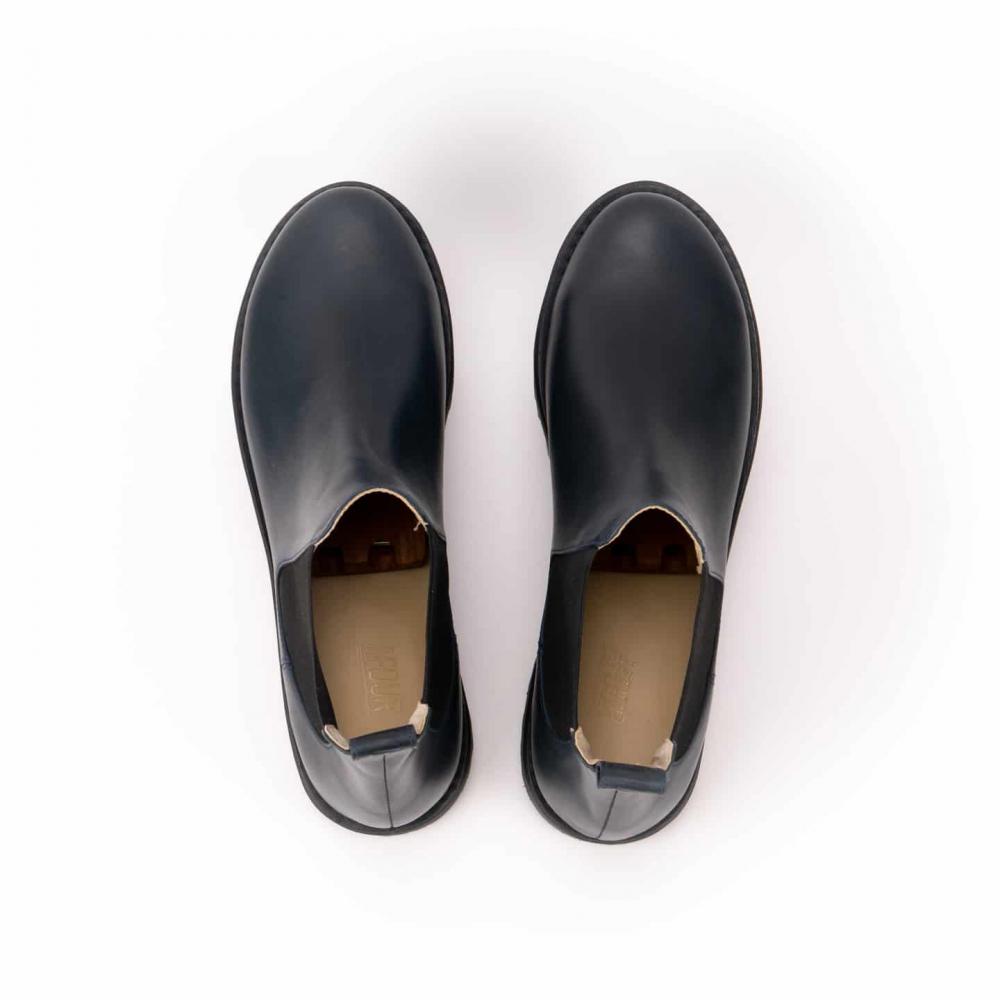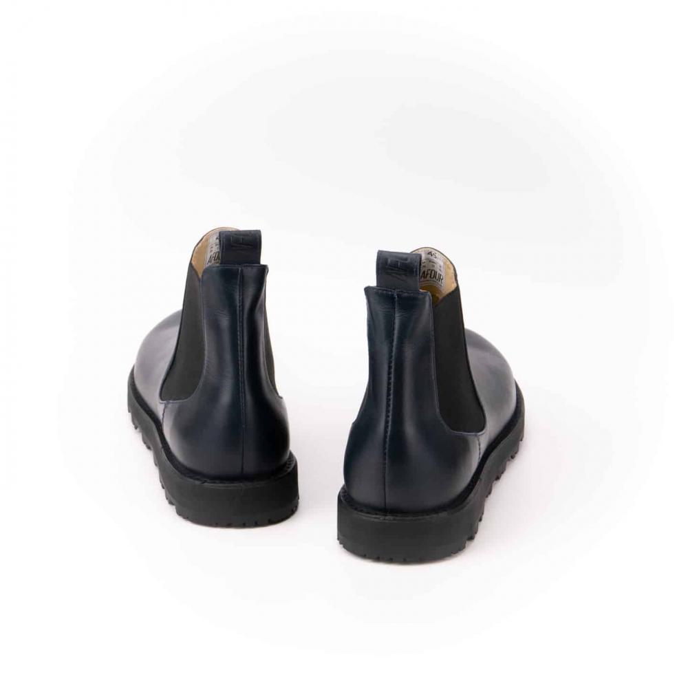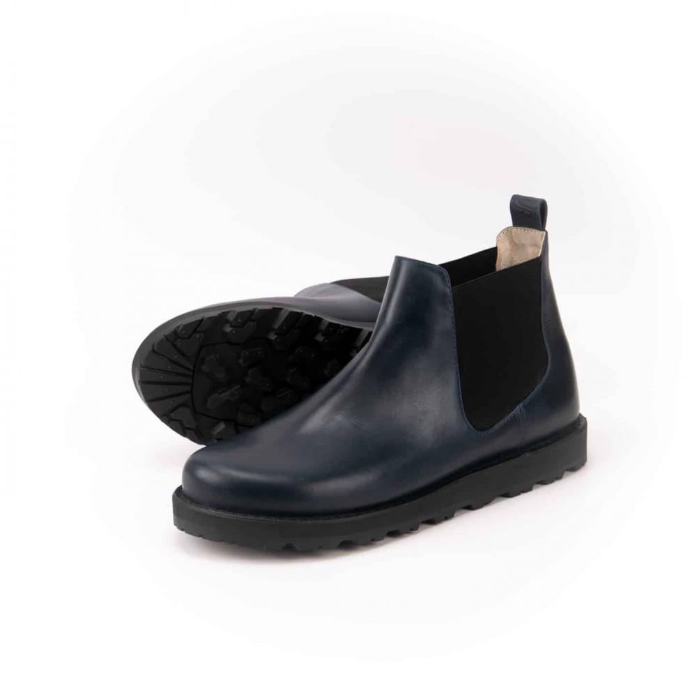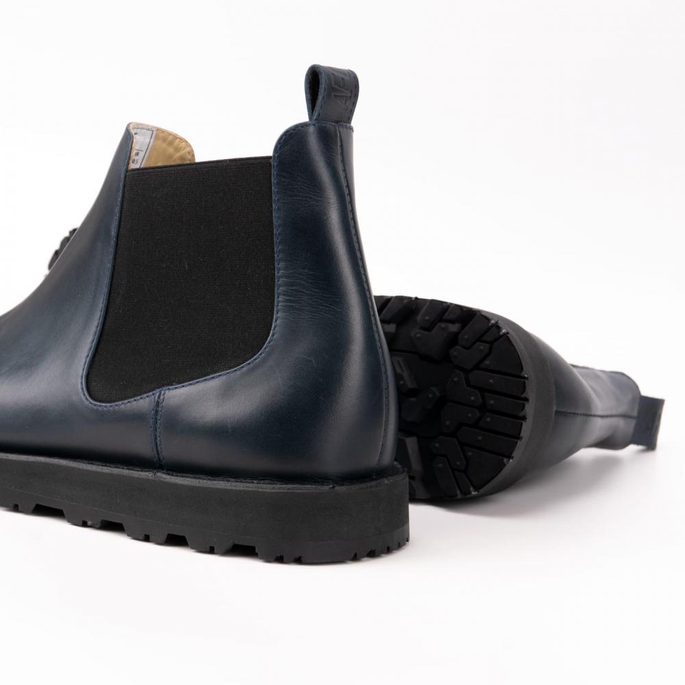 Ботинки челси с усиленной подошвой — стильная и практичная модель для повседневной носки в любое время года. Выполнены из натуральной кожи глубокого темно-синего оттенка, эти челси выгодно выделяются на фоне классических чёрных и коричневых моделей. Эластичные вставки по бокам обеспечивают комфортную посадку и удобство при обувании, а плотная петля на заднике облегчает процесс надевания.