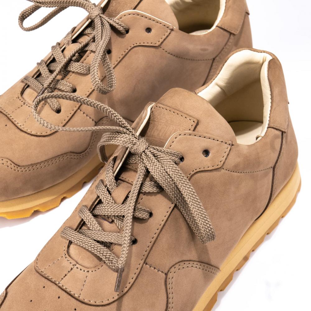 Кроссовки в расцветке Sand выполнены из натурального нубука благородного песочного оттенка. Это универсальный цвет, который органично дополнит любой повседневный образ – от классических джинсов до casual-брюк. Бархатистая текстура нубука придает обуви естественную элегантность и подчеркивает качество материала.